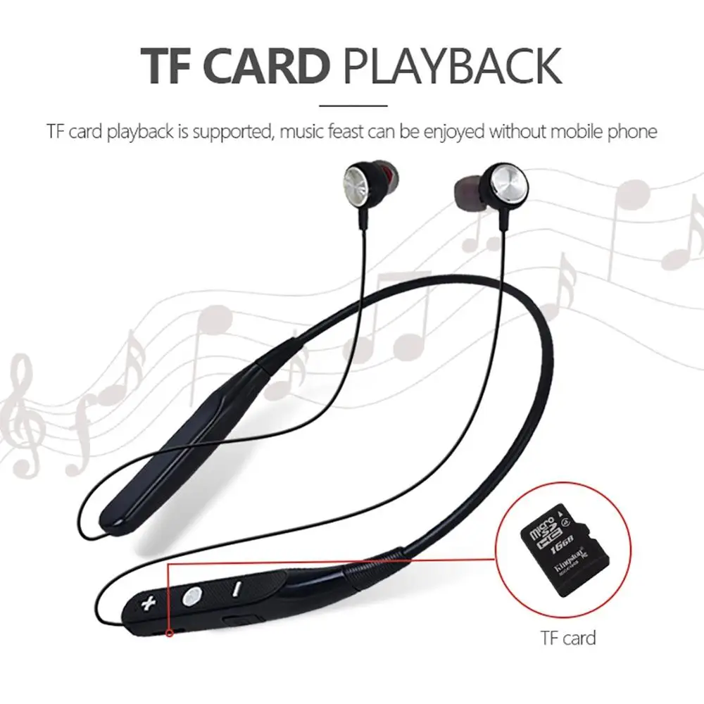 733 Bluetooth Earphones Wireless Headphone Neckband Sport Headset Support TF Card Earbuds with Micr